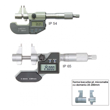 Micrometrele digitale ofera o mai buna metoda de a masura si inregistra dimensiunile obiectelor in cauza. Aceste produse sunt utilizate in cazul in care precizia masuratorilor este necesara si unde nu sunt permise abateri de niciun fel. Mai mult, in acest caz procesul de masurare de realizeaza de 4 ori mai rapid fata de cazul in care sunt utilizate micrometrele clasice – cele mecanice. Micrometrele de interior sunt folosite pentru determinarea cu precizie a suprafetei interioare a pieselor sau a altor obiecte industriale si nu numai. Micrometrele de interior furnizeaza o masurare in 2 sau in 3 puncte si sunt prevazute si cu maner special adaptat pentru masurari a unor gauri adanci.